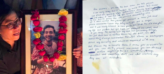 And then there was Arvey. Arvey Malhotra. A gay, dyslexic 15 year old who jumped from the top of his building and ended his life after bullying and sexual abuse at school became way too much to handle. His mother was a teacher at the school and she loved her son, embracing his sexuality and his dyslexia and encouraging him to be who he is. His suicide note encouraged her to leave the school and pursue her art, telling her “dear mumma, you are the best mom on this planet. I am really sorry I couldn’t be more brave”. The police arrested the school head and the school launched an “investigation” and found no wrongdoing. No children were punished, the head mistress was released on bail and reinstated as head, and Arvey’s mum was fired from the school.