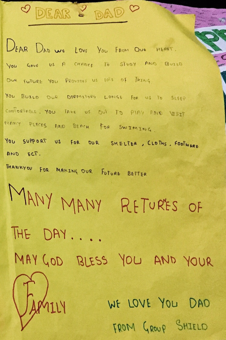 On Wednesday it was Martin’s birthday and he was treated to a birthday for a king. The children had made enormous cards for him, filled with heart-felt gratitude, his friends from church got together and gave him a cake and money and a celebration, and he was visited by the boys who have graduated from BLC and are now working, most of them in the hotel industry. It was moving and inspiring to see these young men, living great lives with a hope for an amazing future, all because of the actions of two beautiful people – Martin and Beena.
